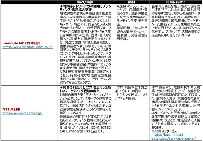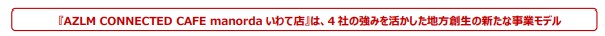 今回の取り組みは、manordaいわて株式会社による県内企業の事業機会やマーケティング機会の創出、NTT東日本のICTを活用したビジネス化と地域局舎の利活用等の地域課題に対して、株式会社トレードワークスがサポートするコネクテッドコマース社のデジタルとリアルを融合したAZLMシステムで解決する今までに無い新しい地方創生モデルです。そして、他地域でも展開可能な事業モデルです。
