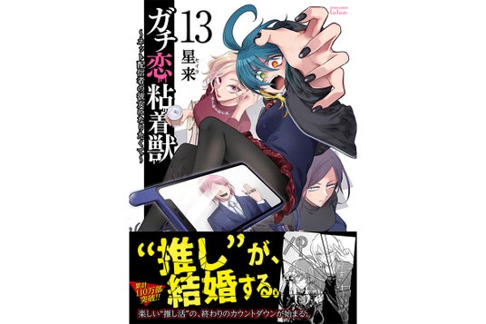 『ガチ恋粘着獣 ~ネット配信者の彼女になりたくて~』第13巻が4月19日に発売となった。今回、新キャラクター・東郷イブキが登場。書影では、かつて“推し”に人生を変えられたガチ恋粘着獣たちに支えられる格好となっており、内容が気になる最新巻だ。