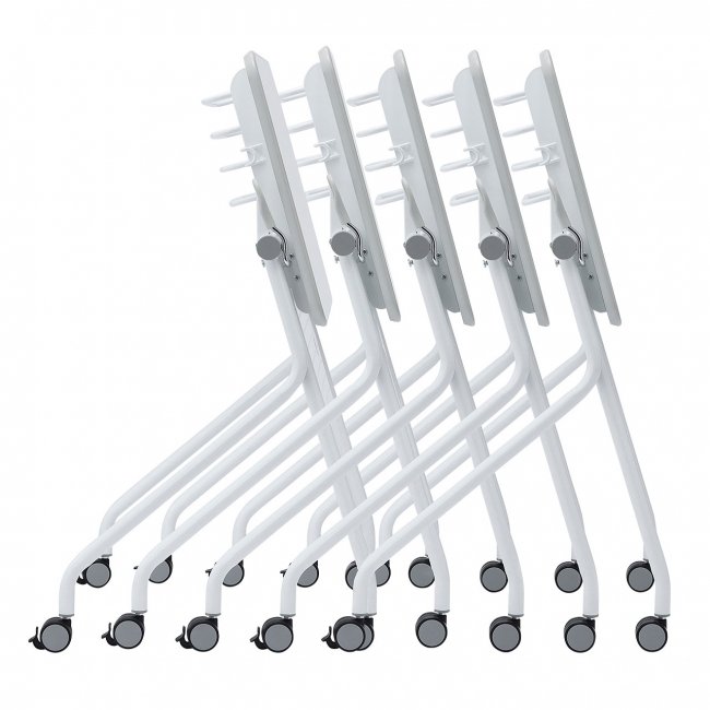 「FLD-6545」とと「SNC-ST6シリーズ」は、設置や収納が素早く行え、折りたたみ式だから収納スペースを取らないデスクとチェアです。折りたたみ・展開が簡単で、キャスターが付いているため移動も簡単に行えます。そのため、教室・講義室や会議室などを目的や用途に合わせて、レイアウト変更を素早く行えます。また、複数台を並べて収納できる平行スタッキング(ネスティング)機能付きで、普段使わないデスク・チェアの保管場所を省スペース化できます。