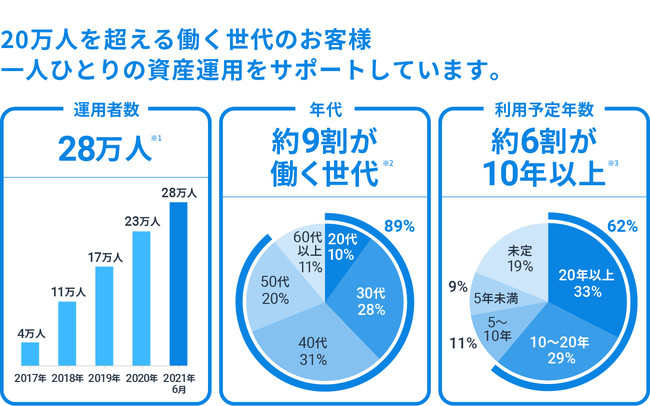 ※1 2021年6月30日時点の運用者数(1万人未満は切り捨て)。「運用者」とは1円以上の預かり資産がある顧客を指す