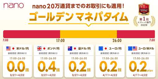【nano】20万通貨までのお取引でも17時~26時は業界最狭水準スプレッドでお取引のチャンス!