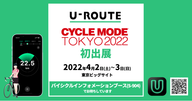 凸版印刷株式会社のグループ会社である株式会社ONE COMPATH(ワン・コンパス、本社:東京都港区、代表取締役社長CEO:早川 礼※1)が運営するサイクルコンパスアプリ「U-ROUTE」は、2022年4月3日(土)~4日(日)に東京ビッグサイトで開催される日本最大のスポーツサイクルフェスティバル「CYCLE MODE TOKYO 2022」に初出展いたします。
