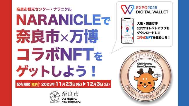 奈良市は、公益社団法人2025年日本国際博覧会協会との連携事業として、「奈良市×万博コラボNFT」を期間限定で配布します。