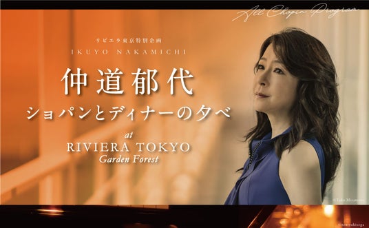 株式会社リビエラ東京(本社:東京都港区 代表取締役社長 小林昭雄、以下リビエラ)は、料亭「白雲閣」から東京池袋で開業75年を迎えるリビエラ東京(所在地:東京都豊島区西池袋)にて、日本を代表するピアニスト仲道郁代氏がキャンドルの灯りに包まれた会場でのサロンコンサートとディナーを愉しめる『ショパンとディナーの夕べ』を、7月20日(土)に開催いたします。