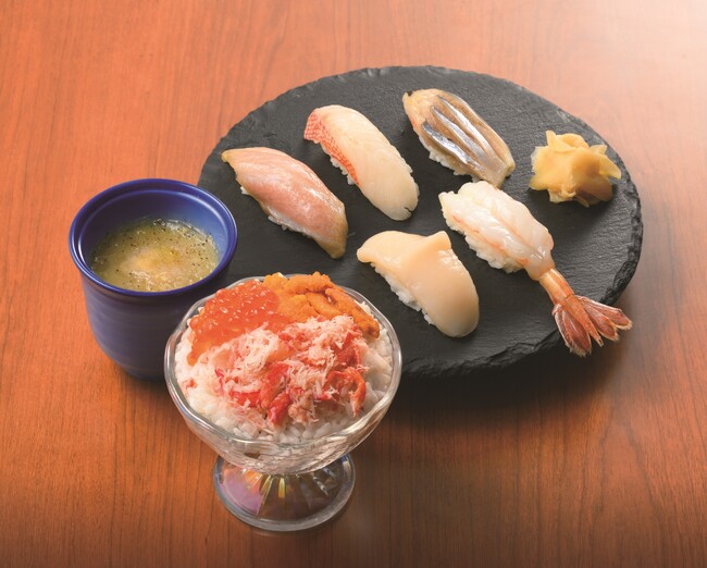 札幌・すすきのの寿司店「札幌ひぜん」。新鮮な旬の食材を使った厳選ネタの握り5種とウニ、カニ、イクラを贅沢に盛りつけたミルフィーユ丼が楽しめるセットメニューが登場します。