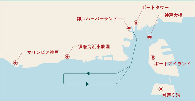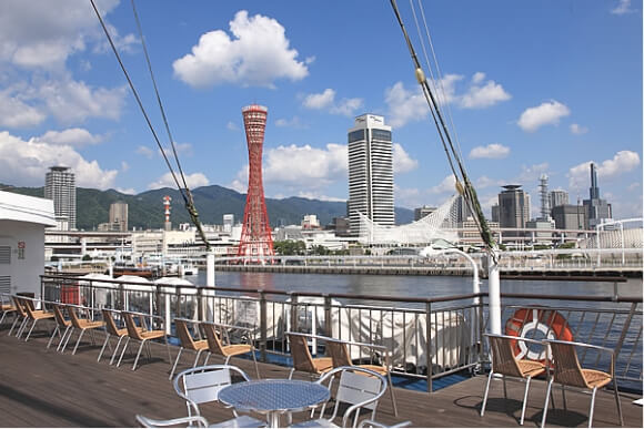 海洋博物館やメリケンパークオリエンタルホテルが並ぶ神戸の代表的な風景を眺めながら、海洋へと旅立ちます。