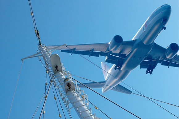 ポートアイランド沖、南側の人工島に建設された滑走路に離着陸する様子を間近でご覧いただけます。
