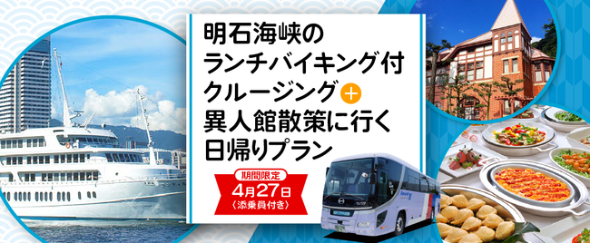株式会社フォーティーズ(本社:大阪市鶴見区、代表取締役 岡武史)は、4月27日限定〈添乗員付き〉明石海峡のランチバイキング付クルージング+神戸異人館を散策に行く日帰りプランのオンライン受付開始しました。
