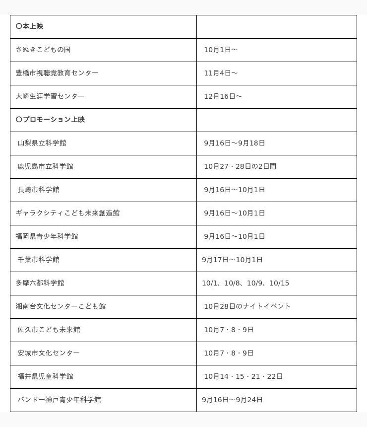 水木しげる生誕100周年とプラネタリウム100周年の連動記念企画として制作されたゲゲゲの鬼太郎(6期)プラネタリウム番組「ゲゲゲの鬼太郎~河童のテラフォーミング」の上映が2023年9月中旬より全国のプラネタリウムではじまります。