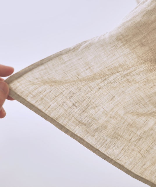 素材は定番の60番手の糸を織り上げた薄手の平織りリネン。