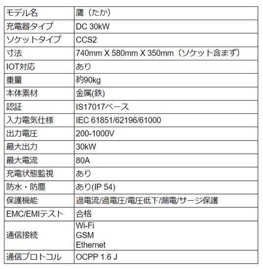 「TAKA(鷹)」:EV四輪の急速充電ニーズに対応した新型30kW急速充電器