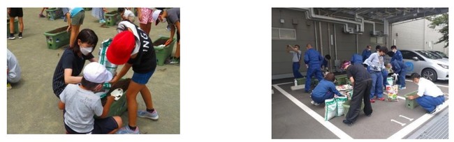 千葉市立幸町第三小学校での種まきイベント NTTネクストサイト美浜ビルでの社員による種まき