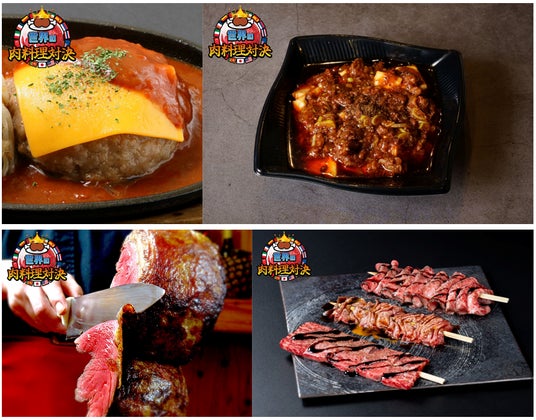 『世界の肉料理対決』では、「将泰庵の飲めるハンバーグ・チーズデミグラス」や「BULLS×岩崎健志郎コク旨極み和牛麻婆豆腐」、「イチボのシュラスコステーキ」などの、全9か国の代表メニュー11品がNo.1バトルを繰り広げます。お客様からの投票によってチャンピオンを決定するお客様参加型のイベントとなります。あなたの一票で、No.1肉料理を決定しましょう!