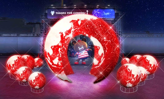 夜になるとライトアップされる肉地球イルミネーションは夜の肉フェスの新しいシンボルです。来場の記念に撮影をお楽しみください。