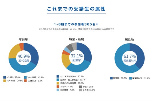 8年間で全国150市町村以上から20-30代の若者を中心に360名以上が受講。地方から日本の課題を解決する新しい社会モデルを生み出すラボラトリー