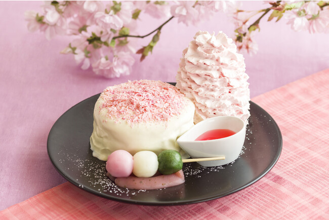 桜のホイップクリームとチョコレートを使ったお花見の季節にぴったりな春ならではのパンケーキ。