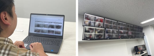 左:ビューアーを確認する様子/右:本社内の高セキュリティエリア内で映像を閲覧