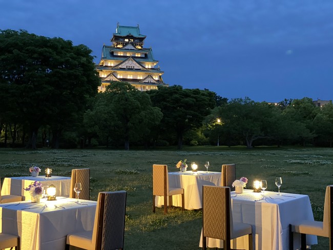 古来から日本では十五夜、つまり中秋の名月を愛でる風習がありました。満月を豊穣の証として秋の収穫に感謝し、芋や豆などの収穫物や、稲穂に見立てたすすきを供えたといいます。 このたび当館では中秋の名月に合わせ、一夜限定の「観月ディナー」を開催いたします。 当日は秋に旬を迎える「大阪産(もん)」を使い仕上げたフレンチと、琴や尺八の生演奏とともにお愉しみください。 さらにデザートタイムはガーデンへご案内。パティシエ特製の限定お月見スイーツ重とともに、ライトアップされた大阪城天守閣と美しく輝く名月をご堪能いただけます。 様々な時代の流れを見守りながら佇む大阪城天守閣のふもとで、平安時代より続く月見を愉しむ…。先人たちに想いを馳せながら、大切な方と共に風情あるひとときをお過ごしください。