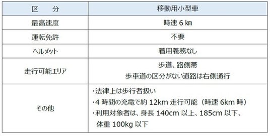 令和5年4月改正道路交通法の施行により新設された車両区分「移動用小型車」に分類される乗り物で、年齢制限がなく(今回の貸出は18歳以上が対象)、運転免許不要でご利用いただくことができます。