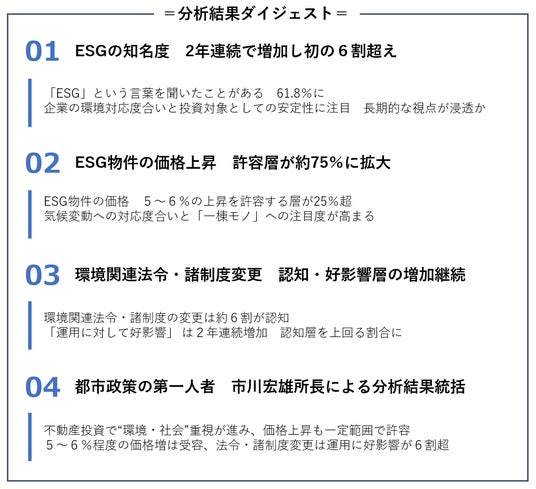 ・ESG物件の価格 5~6%の上昇を許容する層が25%超・気候変動への対応度合いと「一棟モノ」への注目度が高まる