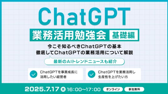 ChatGPTの基礎から、具体的なビジネス活用事例までを分かりやすく解説する勉強会を開催します。すでに400人以上が受講し、その効果を実感しています。ChatGPTをビジネスのインフラとして活用し、業務効率化を図りたい方は、ぜひご参加ください。