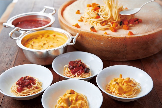 ・グラナパダーノで和えるパスタ カボチャナーラ または プッタネスカ