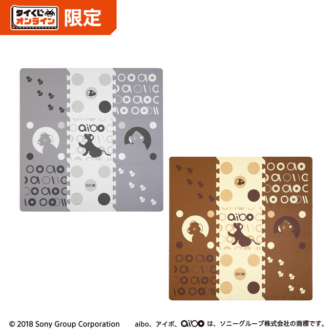 様々なポーズをしたaiboのイラストや、ロゴの総柄等がお洒落にデザインされたフロアマットです。グレーとブラウンの2種展開で、繋がる仕様になっているため、お好きな組み合わせで繋げれば、オリジナルのフロアマットにアレンジすることが出来ます。