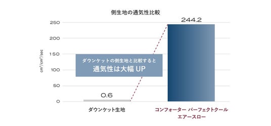 一般的なダウンケット生地と比較すると、通気性は大幅アップ。通気性の良い素材を採用することで、寝ている間に空気を循環して湿気を解消します。
