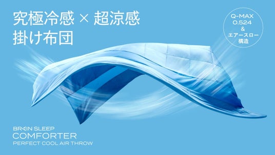 株式会社ブレインスリープ(本社:東京都千代田区、代表取締役:廣田 敦、以下「ブレインスリープ」)は、高温多湿で睡眠課題が増加する季節でも快眠を届けるため、就寝から目覚めまで布団をかけている間ずっと“究極冷感”と“超涼感”が続く夏用掛け布団「ブレインスリープ コンフォーター パーフェクト クール エアースロー(以下「コンフォーター エアースロー」)」をブレインスリープ オフィシャルサイトにて5月14日(水)より発売します。冷感ファイバーと通気性に優れた独自開発のエアースロー構造を採用したことで、接触冷感と持続冷感がダブルの効果となり“究極の冷感”を実現、さらに究極冷感生地とタオルケット生地をリバーシブル構造にしたことで、夏の寝苦しさの原因となる湿気を効率よくコントロールし、“超涼感”も実現しています。