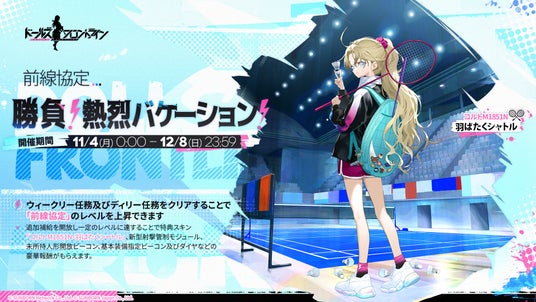 ウィークリー任務とデイリー任務をクリアすることで「前線協定」のレベルが上昇し、新型射撃管制モジュールや未所持人形解放ビーコンなどの豪華報酬がもらえる『前線協定 勝負!熱烈バケーション!』を「11月4日(月)0:00」より開催します。