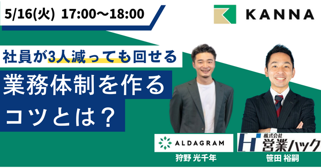 株式会社営業ハック(本社:東京都港区・代表:笹田裕嗣)とany株式会社(本社:東京都千代田区・代表:長濱光)が共催ウェビナーを行います。日時は2023年5月16日(火)17:00~18:00、参加費は無料です。日本が超高齢化社会になる「2025年問題」。また、2024年には働き方改革関連法により時間外労働の上限規制の適用も始まり、働き手の「数」や働く時間の「量」で仕事の成果をあげていくことが困難な時代になります。こういった人材難の世の中である以上、より少ない人数、少ない時間で効率よく働いていくことが求められます。その環境を構築するのに欠かせないのが「現場マネジメント」。今回はそのノウハウを余すところなくお伝えします!