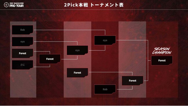 2Pick ROUND1は、プロシーンを長年牽引してきたForest選手とさに選手による注目の一戦となり、Forest選手が2-1で勝利を収めました。
