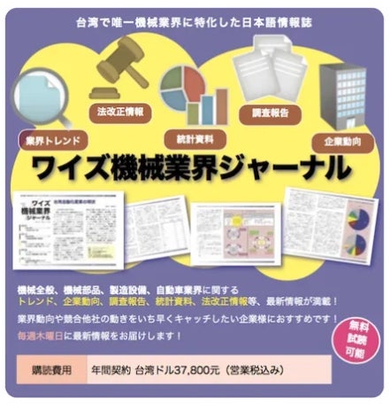 ・日本語台湾経済ニュース、機械業界ジャーナル配信