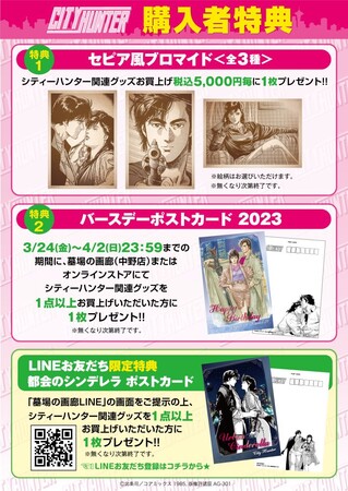 マンガ、アニメ、特撮などを始めとするサブカルチャーをテーマとした企画展を開催・運営している株式会社クレイジーバンプは2023年3月24日(金)より墓場の画廊中野店と墓場の画廊ONLINE STOREにて開催する【シティーハンター in 墓場の画廊 都会のシンデレラ編 POP UP STORE】の商品情報第三弾を公開します。
