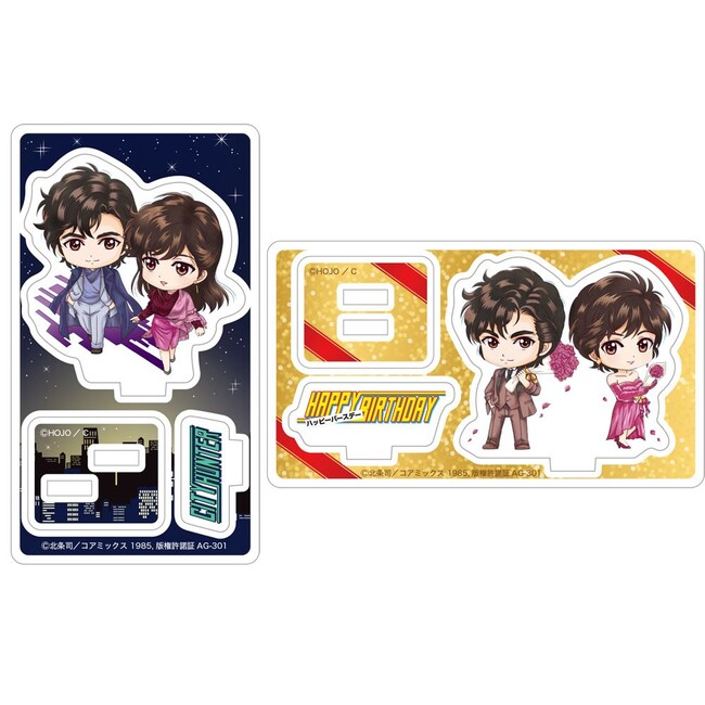 二頭身にデフォルメされた獠と香がかわいらしいアクリルスタンド。