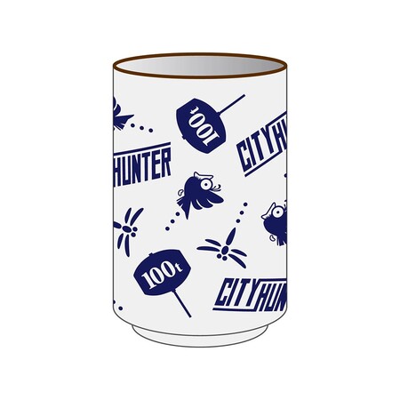 シティーハンター名物!? ズッコケカラスとトンボと100tハンマーが総柄プリントされた湯呑み。