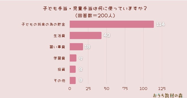 ・前に子ども手当をしっかり貯めると200万円ほどになると聞いて貯めよう、大学などお金がかかるときに使おうと思ったからです。