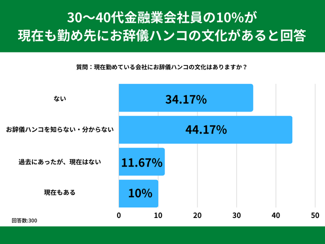 次いで多かったのが「ない」と回答した方の34.17%。「過去にあったが、現在はない」という回答が11.67%、「現在もある」が10%で、現在も勤め先にお辞儀ハンコの文化があると回答した方は全体の1割に及びました。
