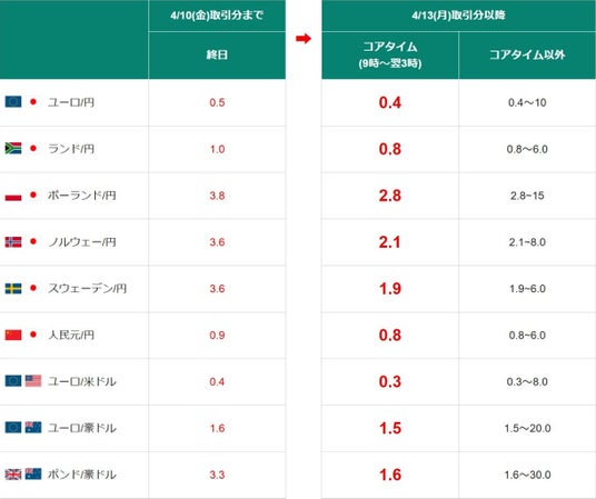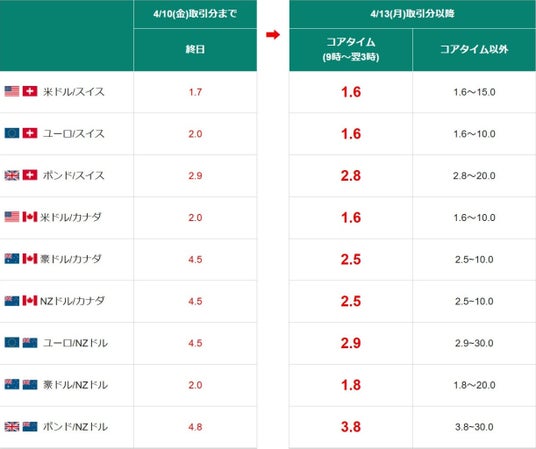米ドル/円以外のより幅広い通貨ペアでも、お客様にお取引いただきやすい環境を提供するべく、新たに18通貨ペアの通常スプレッドの縮小および全通貨ペアのコアタイム制導入を決定いたしました。