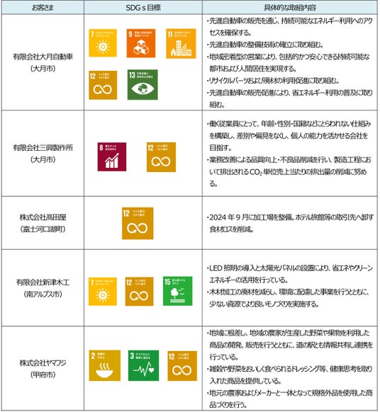 株式会社山梨中央銀行(頭取 古屋 賀章)は、SDGsの目標達成に資する取組みを積極的に行っているお客さまにご利用いただける「山梨中銀SDGs応援ローン」を、2025年6月中に5件実行しました。