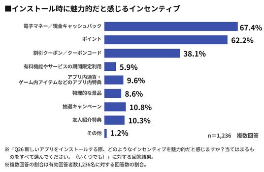 - ユーザーに最も好まれるインセンティブは「電子マネー/現金キャッシュバック」で67.4%