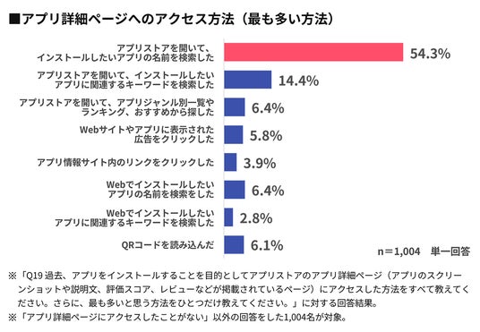 - 54.3%が「アプリ名での指名検索(アプリストア内検索)」によるアプリ詳細ページへのアクセスが、最も多いとしている