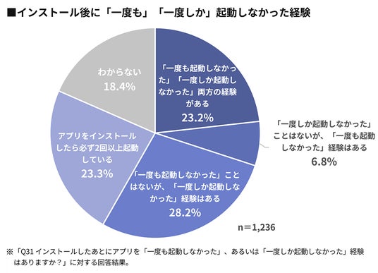 - インストール後に「一度も」「一度しか」起動しなかった経験がある人は全体の58.2%に上る