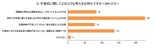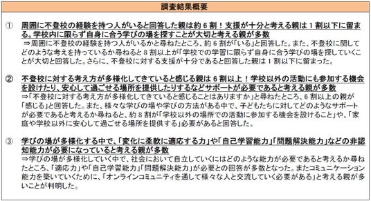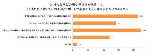 1割以下に留まる。学校内に限らず自身に合う学びの場を探すことが大切と考える親が多数