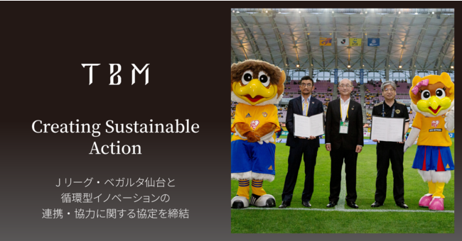 株式会社TBM(本社:東京都千代田区、代表取締役CEO:山崎敦義、以下TBM)は、公益社団法人日本プロサッカーリーグに加盟する「ベガルタ仙台」を運営する株式会社ベガルタ仙台(本社:宮城県仙台市青葉区、代表取締役社長:佐々木知廣、以下ベガルタ仙台)と、この度、宮城県内における循環型イノベーションの創出及び地域活性化への貢献を目的とする連携協定を締結いたしました。