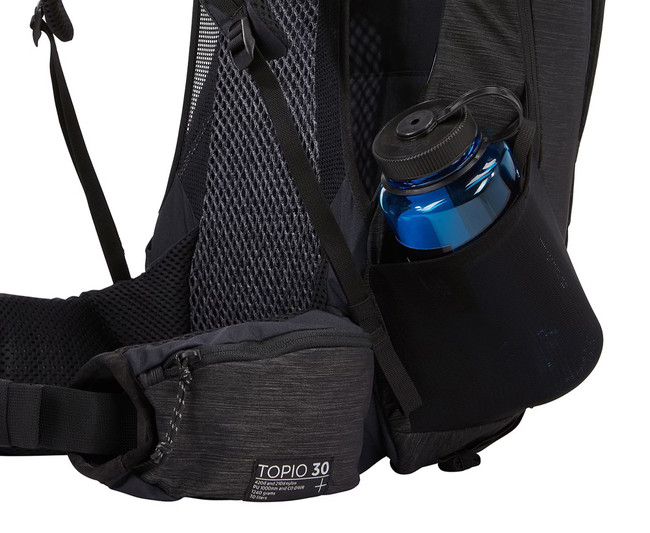 ▲ドリンクボトルがすっぽり入る伸縮メッシュサイドポケット。