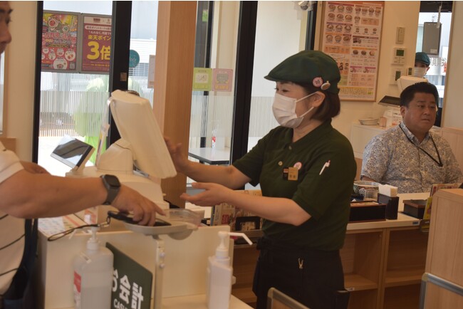 吉野家1号線十番町店(所在地:愛知県名古屋市)で開催した「2023年度チームサービスコンクール」の決勝戦に出場したのは、各地区予選を勝ち抜いた7チームです。いずれのチームも注文会計やご案内など接客と調理に関する各ポジションの4名で編成されており、営業中の同店舗で各チームが順次接客を行い、4名が連携して生み出すサービス総合力と出場者個々人の接客技術を営業経験が豊かな審査員が審査しました。