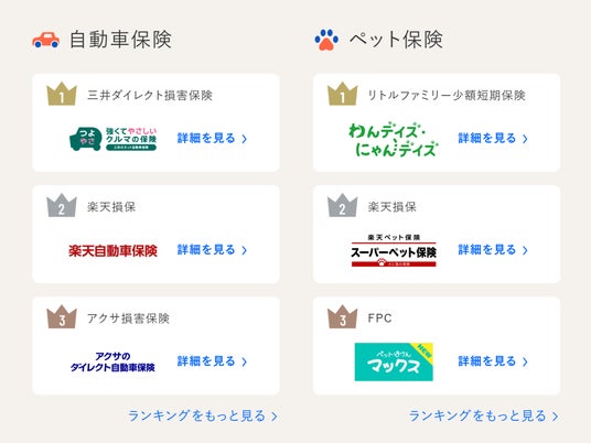 自動車保険・ペット保険ランキング