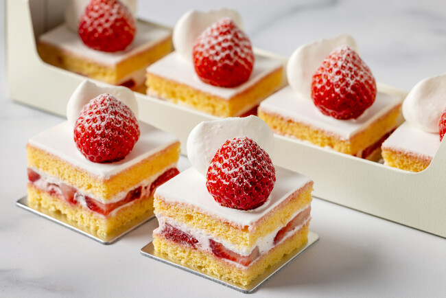今年は2種類の新作を含めた5種類のスイーツと新作ブレッド1種が登場いたします。ムースやショートケーキ、タルトなど、使用するいちごの特徴を生かしたひと口サイズの生菓子5種を詰め合わせた、宝石箱のような「ストロベリー ピッコロ ガット」が新作として登場。また、「あまおう」、「とちおとめ」など、シェフが時期ごとに厳選する4種のブランドいちごの食べ比べも楽しめる「ストロベリーショートケーキ アソート」や、真っ赤なストロベリームースの中に、ピスタチオブリュレ、ピスタチオのスポンジ生地など5種のフレーバーを忍ばせた「ストロベリームースケーキ」、いちごとホワイトチョコレートがたっぷりと入った香ばしいデニッシュ「ストロベリーブレッド」が新たに仲間入りします。ホテルの名を冠すグランドシリーズからは、ジャージー乳の生クリームと最高級とされるタヒチ産バニラをつかったクレームブリュレ、厳選されたフレッシュないちごなど、通常のケーキよりもさらに上質な食材でつくる「グランド プレミアム ストロベリー ショートケーキ」を今年もご用意いたします。