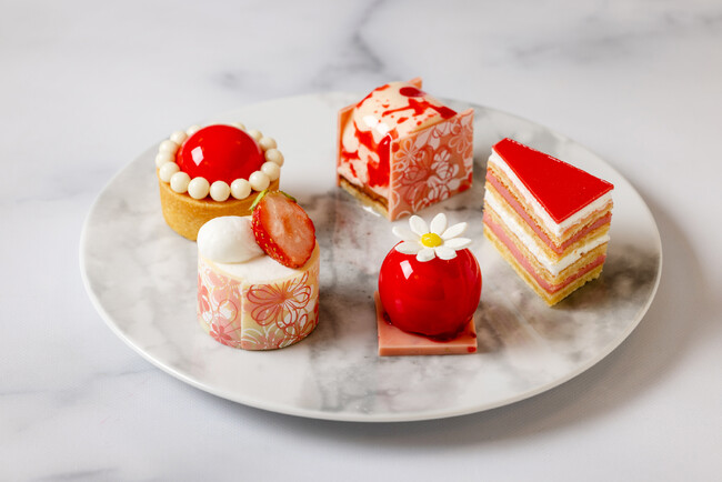 いちごムースやオペラケーキなど、ひと口サイズのいちごスイーツ5種詰め合わせや4種のブランドいちごの食べ比べを楽しむショートケーキセットが新作として登場